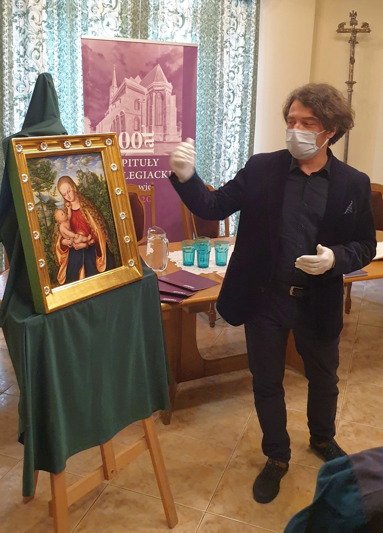 • Oprawa: rekonstrukcja technologiczna późnogotyckiej zintegrowanej z obrazem ramy (tzw. cassetta), drewno lipowe pokryte zaprawą kredowo-klejową + złocenia bolusowe (24 karaty + srebro)